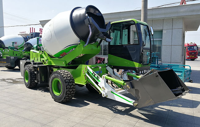 In the driving, the direction of the tank can be changed through the control handle of the self loading concrete mixer, the accelerator pedal can adjust the speed of the tank, and the locking mechanism can ensure that the tank of the concrete loading mixer does not reverse during transportation; The rotation speed can be adjusted by pulling the rear handle of the concrete loading mixer outward, and the rotation direction of the tank of the concrete loading mixer can be controlled by pulling up and down.
