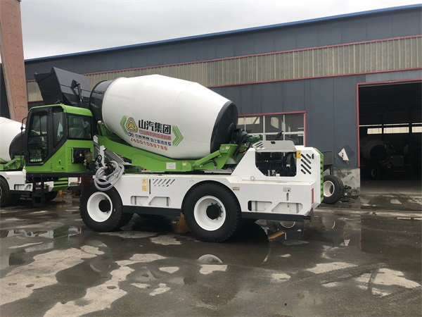 1. Park the small concrete mixer truck on the horizontal ground and tighten the hand brake.